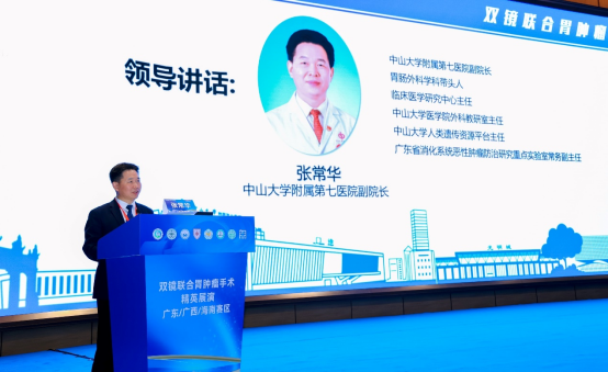 中山大学附属第七医院副院长张常华教授在开场致辞中表示,双镜联合技术是胃癌微创外科的重要发展方向。本次精英展演不仅为区域青年医师提供了技术规范化与创新协作的实践平台,更旨在通过高水平的临床技能交流,促进双镜联合胃肿瘤手术的临床应用和推广,从而推动区域间诊疗规范的同质化发展。奥林巴斯中国区医疗事业统括总裁王晓勇在致辞中表示,依托在内窥镜领域的长期积累,奥林巴斯长期面向不同需求、不同阶段的临床医师提供多样化的培训课程,搭建持续学习与交流平台。他期望参赛者能将赛场所学转化为临床实践,推动先进诊疗技术的普及,最终惠及广大患者。