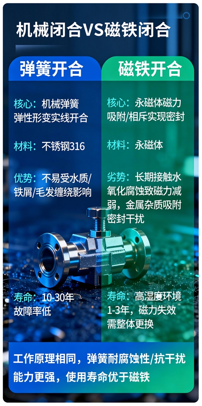 与市场上常见的磁吸式地漏不同,神枪手独创弹簧自适应开合系统。其原理精妙而可靠:有水时,水流重力自然推开阀门,实现超快排水;无水时,高精度弹簧立即顶闭阀门,形成严密封堵。此纯物理结构,彻底避免了磁铁因吸附杂质、磁力衰减导致的密封失灵问题,耐久性远超行业标准,真正实现“秒排水、永防臭”。