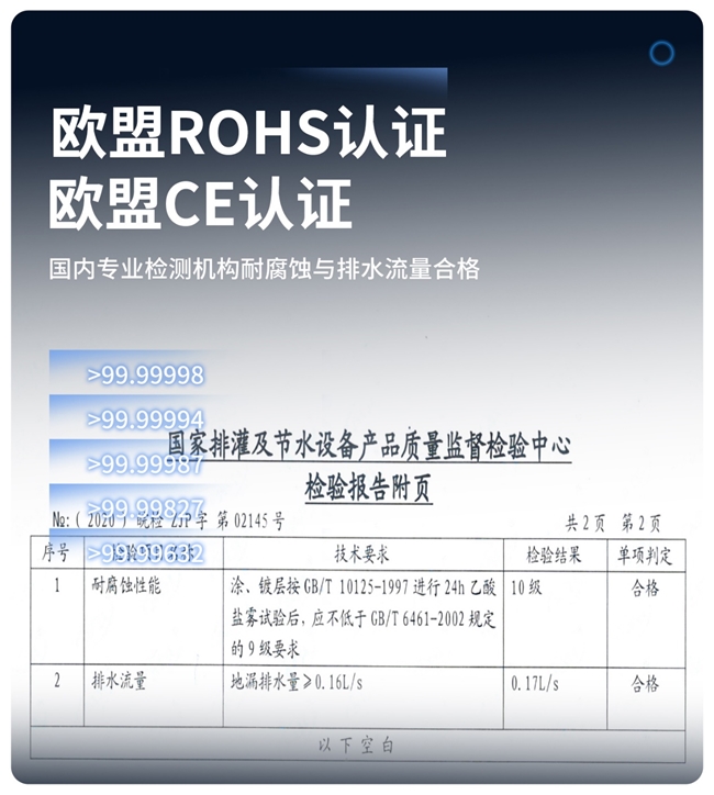 卓越性能源于严苛标准。神枪手地漏不仅荣获国家多项专利,全面通过国内权威检测机构认证,更在2025年成功获得欧盟CE认证,符合EN国际标准。这标志着其产品在密封性、耐久性及流量性能上已达到国际先进水平,拿到了畅行海外的“通行证”。