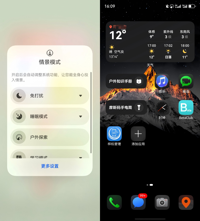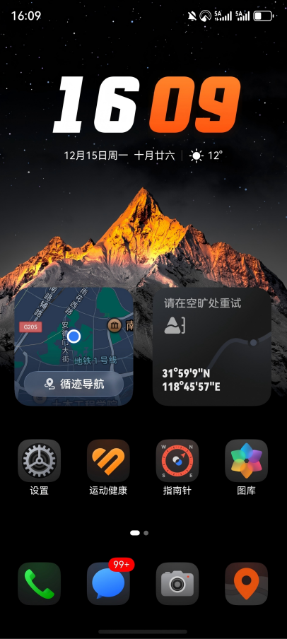 除此之外,我还留意到一个很贴心的设计:开启户外探索模式后,桌面上的天气时钟组件会自动切换成“户外版”——字体变得粗大清晰。在户外徒步中,只需瞥一眼屏幕,快速知晓时间、气温等。