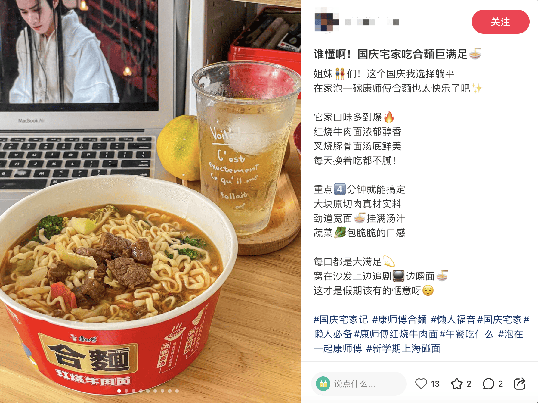 《DT商业观察》留意到,在小红书上,#泡面的灵魂吃法#有25.7亿的浏览,395.8万的讨论。大家乐此不疲地寻找泡面的“邪修”吃法,想要“一周不重样”的新鲜感;更多人自发给泡面加料、做营养升级,期待在美味基础上吃出情绪满足。