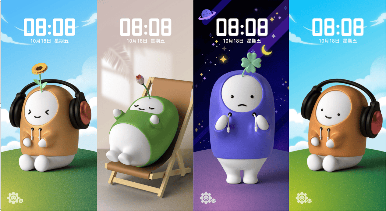 《Q弹情绪向右滑》:长按切换皮肤,右滑触发情绪彩蛋,联动AOD与耳机弹窗打造沉浸体验;