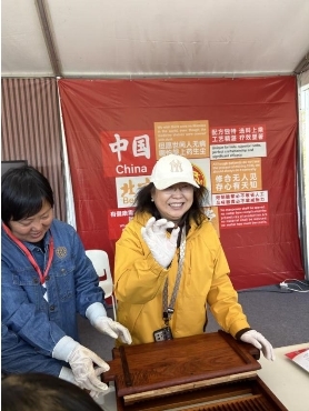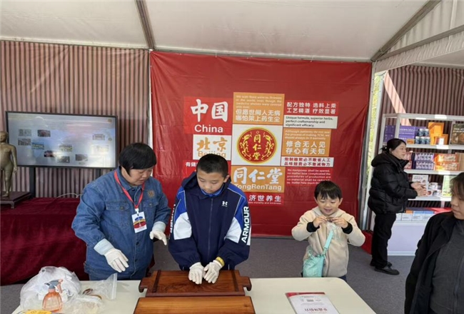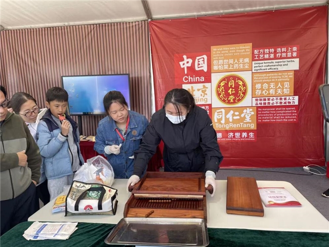 正文:10月20日,以“非遗市集·共享生活”为主题的北京国际非遗周展会在北京城市绿心森林公园精彩亮相。展会上,同仁堂科技发展股份有限公司(以下简称“同仁堂科技公司”)生产的大品种中成药纷纷亮相展会,北京市东城区非物质文化遗产代表性项目——同仁堂安宫牛黄丸传统制作技艺传承人、“中药塑丸”首席技师工作室负责人孔令君还在现场展现蜜丸制作非遗技艺,让广大观众近距离充分感受传统中医药制作过程的魅力。搓丸板亮相成焦点