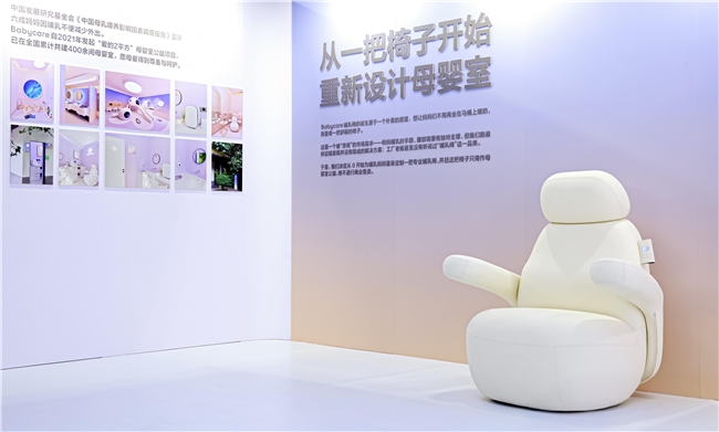 Babycare不仅在推动母婴室“从无到有”的数量改善,还在致力母婴室“从有到优”的质量提升。这一次,改变从展会现场的一把哺乳椅开始。据了解,这款由Babycare从0到1研发的哺乳椅,针对哺乳妈妈腰部、颈部、手部的独特支撑需求进行特殊设计,椅子采用加宽可调节扶手、多段高回弹海绵与三段式头枕,搭配防水防污的有机硅皮革,既实现270度环抱式舒适体验,又解决了公共空间的清洁难题。在此之前,行业内并无此类产品,甚至没有“哺乳椅”这一品类。而Babycare的研发初心仅仅是一个具体而朴素的愿望:想让妈妈们不用再坐在马桶上喂奶。更具深意的是,品牌明确表示:该款哺乳椅仅用于母婴室公益,不进行商业售卖——以纯粹初心,践行品牌长期主义公益观。