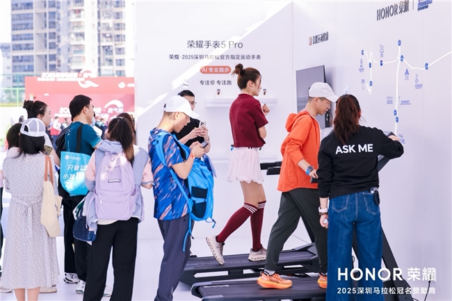 本次赛事,除在赛道关键节点和终点设置加油站和赛后恢复区外,荣耀还在现场为广大跑者及市民朋友打造了全生态场景互动体验区,通过深度体验、互动闯关等趣味装置,展现荣耀品牌在AI、通信、影像和运动健康等领域的持续攻坚成果,让大家在轻松愉悦的氛围中收获欢乐与专属好礼,共享赛事激情。