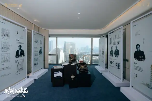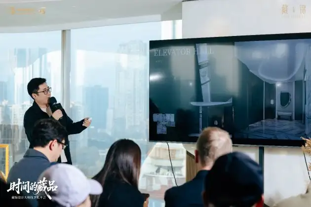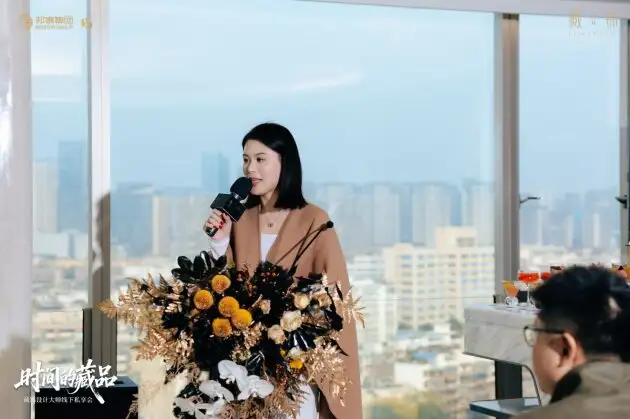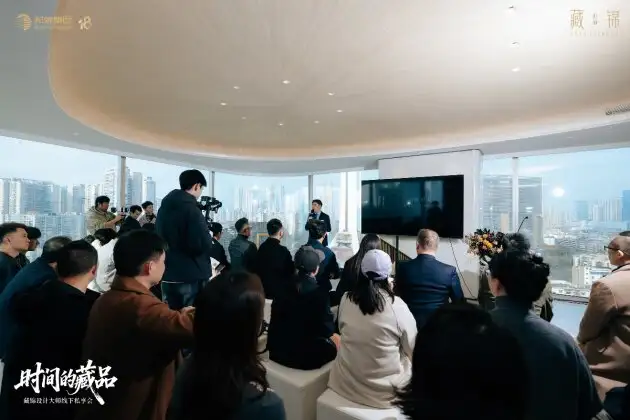 「时间的藏品」沙龙将举办场地移入藏锦交标样板间内,让参与其中的人更直观的感受这座城市的心跳与藏锦价值观——窗外,是成都339电视塔的流光溢彩与府河奔涌不息的波澜;窗内,是藏锦以沉静姿态铺展的一隅私享空间。