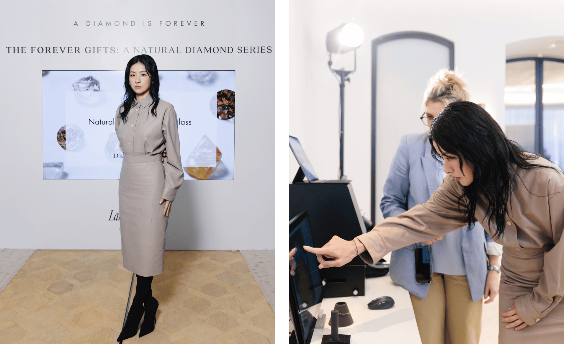 在天然钻石工坊中,来宾们亲身体验了天然钻石原石分拣、抛光钻石分级,并学习如何鉴别区分天然钻石与合成钻石。演员佘诗曼及时尚名人徐濠萦两位戴比尔斯集团天然钻石工坊特邀体验嘉宾,也跟随戴比尔斯钻石研究机构导师亲自感受了天然钻石魅力。