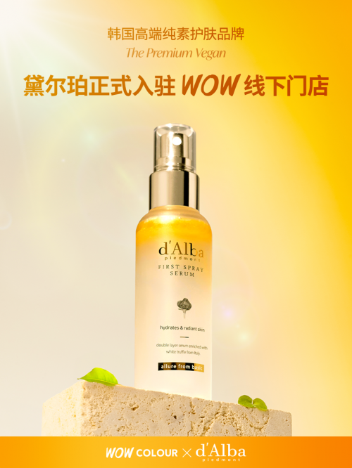 正文:随着「纯素护肤」成为全球美妆关键词,10月10日国际高端护肤品牌 d'Alba 黛尔珀正式宣布登陆中国美妆集合地标 WOW COLOUR。d'Alba 黛尔珀凭借纯净天然的品牌哲学与先锋产品,已在天猫国际、抖音、快手、小红书等线上平台收获超多好评。此次线下亮相,标志着品牌在中国市场开启全新篇章,以更近距离的姿态,回应消费者对纯净护肤与高端体验的期待。