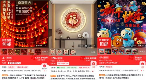 在选择年节装饰时,消费者既注重颜值与实用性,也青睐其承载的美好寓意。在京喜自营平台上,一款太阳能小红灯笼灯串凭借其喜庆配色和免布线的安装优势,销量持续攀升。水晶福字LED壁灯造型别致、安装简便,成为点缀墙面、玄关的热门选择。此外,采用柔软材质搭配静电吸附功能的2026年新款毛绒窗花,以及“五福临门”挂件,既有高颜值,又寄托美好祝愿,因此颇受消费者欢迎。