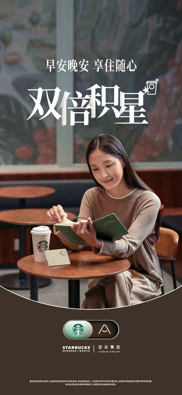 • 星巴克中国携手亚朵集团推出联合会员 “升级好房、双人早餐、延迟退房”,会员权益再度升级