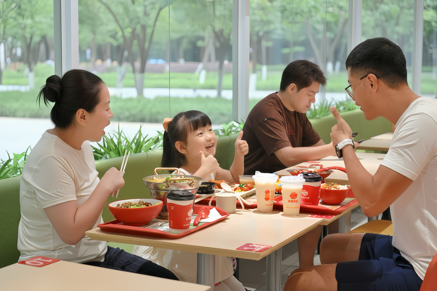 基于此,“精武有食集”应运而生。它绝不是一个简单升级版的美食广场或高效就餐区,而是越秀商管以深刻人文关怀重构商业价值逻辑所打造的一座心灵“治愈岛”。其商业实践围绕空间、内容与服务三个核心维度,层层递进,构建了一个完整的温暖体验系统。