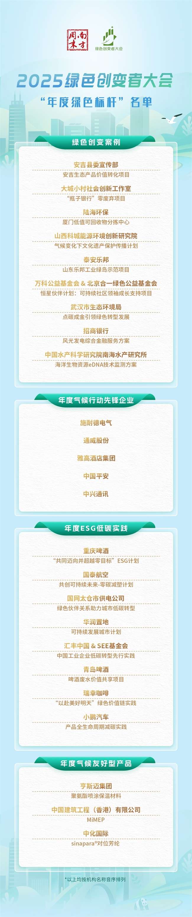 值得一提的是,在本次绿色大会上,南方周末与中国环境新闻工作者协会正式达成了战略性合作;此外,未来南方周末将与国际移民组织达成更多合作。会上,2025“年度绿色标杆”名单正式发布。