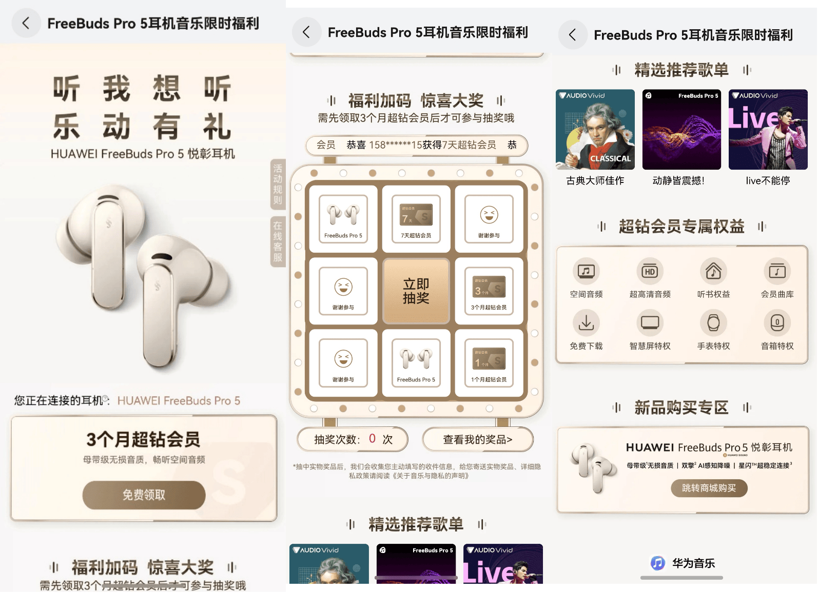 新品福利这样领,耳机到手直接薅4个月华为音乐超钻会员