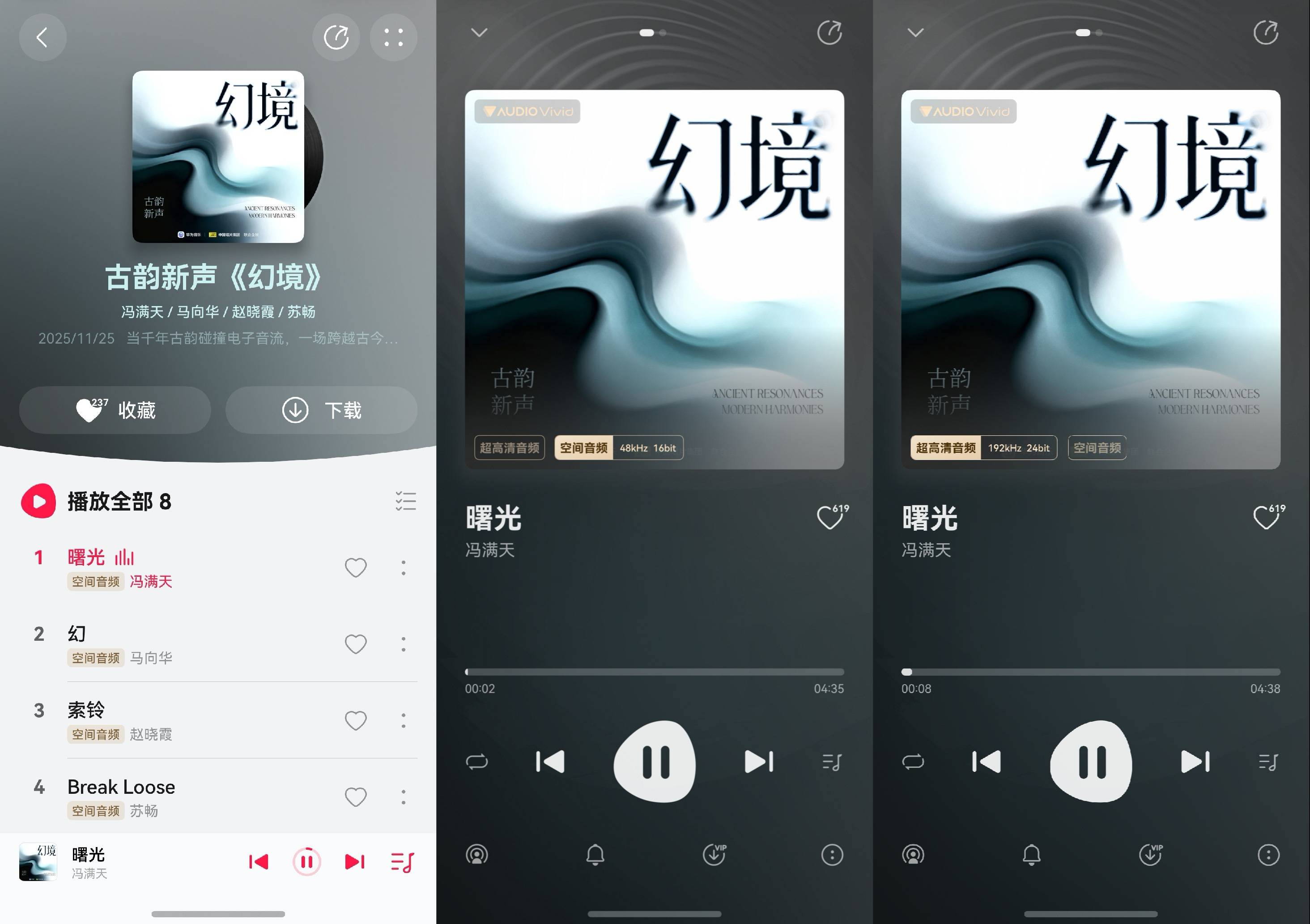 领取福利后,华为FreeBuds Pro 5悦彰耳机的硬件潜力和华为音乐隐藏玩法才真正展开。戴上耳机,在活动底部找到耳机专属歌单或者在华为音乐中搜索《幻境》这一为FreeBuds Pro 5 悦彰耳机做了特殊调教的非遗专辑,再点亮端内每首歌都有的“空间音频”按钮,你会发现声音将不再局限于脑海中央,古琴、阮咸、二胡、古筝这些非遗乐器方位清晰可辨,营造出置身音乐厅的包围感,跨年秒穿维也纳金色音乐大厅;亲友聚会时切换“超高清音频”模式播放刘德华新歌《非凡》,每一个音符细节都清晰可辨,连呼吸声都带着温度。