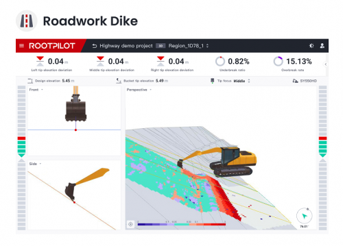 另外,在数字孪生技术落地方向也是排名全球前三。ROOTPILOT 3D机器控制系统借“智能眼镜”技术革新挖掘机操作,能实时完成高精度土方作业任务,增强操作员空间感知,实现精准高效挖掘,已在市政工程、高速工程、疏浚工程、沟渠工程等领域成功应用。