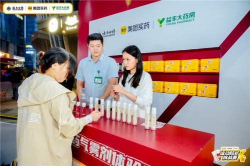 (活动现场工作人员讲解云南白药气雾剂产品)