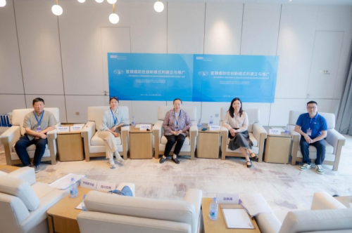 图:广安宫颈癌筛查公益项目启动当日媒体访谈,从左到右:北京大学深圳医院渠新风教授、北京大学深圳医院杜辉教授、北京大学深圳医院国家子宫颈癌早诊早治示范基地主任和妇产科学研究所所长吴瑞芳教授、相达生物科技国际有限公司副总裁招展如、相达生物科技中国区总经理官鑫