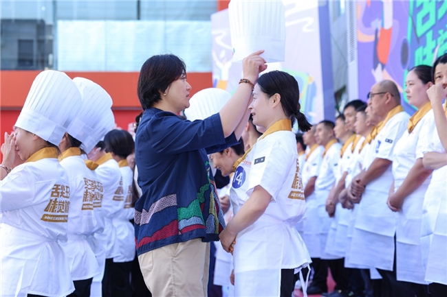 在庄严的授帽仪式上,园所领队为厨师们佩戴上象征责任与洁净的厨师帽。全体厨师郑重宣誓,承诺以匠心烹制每一餐。来自湖南长沙御文台红黄蓝幼儿园的秦明辉师傅和山西晋中榆次区红黄蓝幼儿园的冯跃红师傅作为代表发言,动情表示:“我们将以爱心传承匠心,让孩子的每一餐成为童年记忆中最温暖的存在。”这句朴素的话语,道出了红黄蓝后勤团队共同的心声。