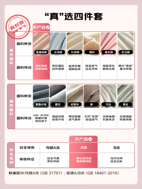 在打标的床上用品四件套详情页中,具体介绍了水洗棉、针织棉、高支棉、磨毛、天丝等多种材质的特点,以及各个安全等级的相关知识,京东家居日用还在图中特别注明产品的材质等信息,以直观对比的方式确保消费者选购无压力。与此同时,通过主图、参数图、实验视频等可视化工具,消费者可以通俗易懂地了解产品的材质厚度、吸水性、保暖度等专业核心指标,拒绝虚高溢价。为了打消消费者疑虑,京东家居日用更对全部打标产品进行第三方权威检测,支持扫码查验。