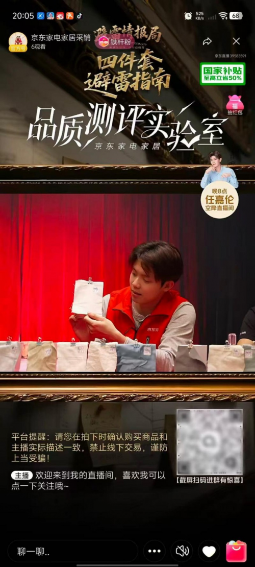 近日,央视曝光直播间“高端四件套”猫腻,相关话题冲上热搜榜单,不少消费者表示市场亟需“真材实料、货真价实”的产品。对此,京东家居日用针对四件套打造“真”标识,以通俗直观的方式向消费者展示各类面料的材质特点、安全等级等专业参数,并将打标的全部产品进行第三方权威检测,确保品质可控,树立家居日用领域“真品质”标杆。9月24日,京东家电家居采销直播间特别开启专场直播活动,向消费者科普如何选购四件套不踩雷的小妙招,还带来海澜之家、红豆、AMOR等大牌的品质爆款,以及免费抽送打标四件套爆款等惊喜,方便消费者省心省钱入手高性价比产品。