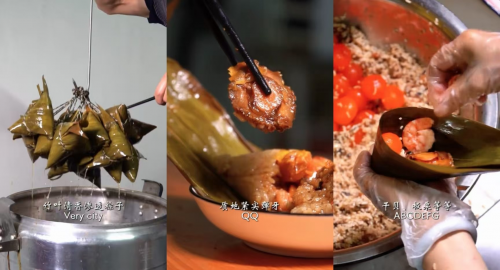 “寻味潮汕”账号早早摸索出了地方美食、人文纪实的账号风格,“鲍鱼海鲜粽教程”内容便延续了其一贯的纪录片手法,细致拍摄出粽叶、鲍鱼、蛋黄等食材处理,既融合了民俗文化,也呈现了美食特色,用细腻风格留住了用户。