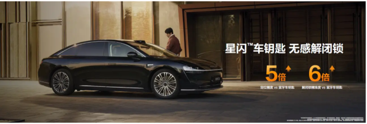 (*星闪指星闪无线通信技术,是一种无线短距离通信技术,用于承载智能终端、智能家居、智能汽车以及智能制造等领域应用场景的数据交互。星闪无线通信系统由星闪接入层、基础服务层以及基础应用层三部分构成。“星闪”是国际星闪无线短距通信联盟的注册商标。星闪车钥匙需 OTA 升级,配合 iOS 手机不支持该功能,目前仅支持尊界 S800 系列、问界 M9 系列、问界 M8 系列车型,请以实际使用情况为准,详情请咨询华为客服。)
