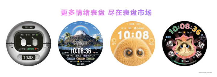 除此以外,用户还可以在表盘市场里找到更多款式的情绪表盘,随心切换,随时展现独特个性。从静态搭配到动态互动,HUAWEI WATCH GT 6系列真正将表盘打造成个性表达与情感陪伴的腕上窗口。