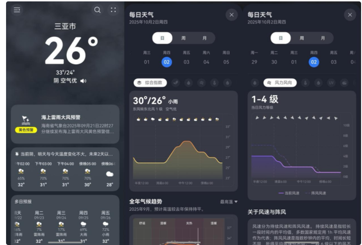 要是你也计划国庆去三亚,或是奔赴其他心仪之地开启旅程,不妨去看看华为天气,根据当地天气及时调整行程规划,能够让你的旅程少些波折、多些顺畅,少些担忧、多些愉快!
