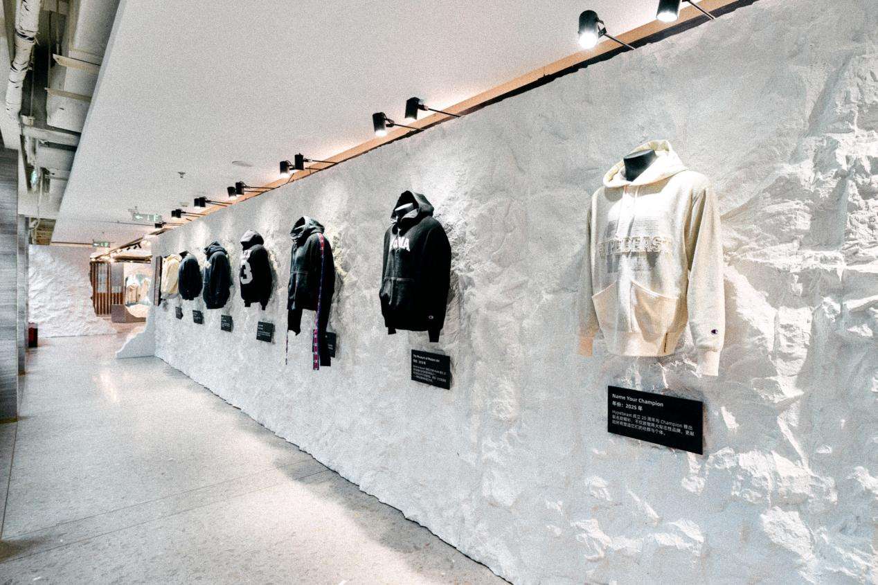 线下门店被视为品牌体验的核心场域。Champion通过空间焕新不止于提升销售,更致力于传递品牌态度、深化用户连接。近期焕新的成都盈嘉旗舰店融合街头风与复古学院元素,打造沉浸式“品牌档案馆”,将零售空间转化为潮流文化地标。店内设置卫衣定制区,消费者可创作个性化单品,强化互动体验与情感共鸣。这一线下焕新与线上超品日共振互补,实现线上线下流量的闭环循环。