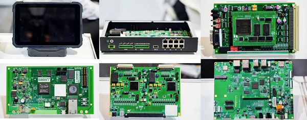 其中,用于协作型六轴机器⼈的机械手控制板,模块化嵌入式设计可提升装配效率20%;⽤于⾼速永磁电机控制器的电机驱动板,硬件成本相较同类降低15%,关键高速信号性能指标提升25%;用于工业安防的三防平板电脑,基于RK3399开发,配备WIFI、摄像头和指纹传感器,具备防尘、防水、防摔功能。此外,还展示了5G网关、工控机等产品,覆盖机器人、工控自动化、智能仓储等场景领域。