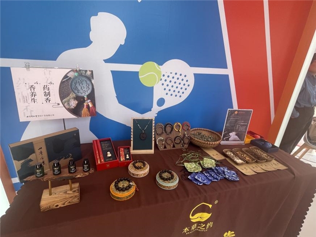 在同仁堂主题展台,陈列着同仁堂科技公司出品的“本草之约”系列产品、苏合悦馨冷香、四季合香以及精油等。工作人员介绍,同仁堂科技公司生产的香品均来自天然中草药,这引得网球选手们争相试用。一位来自欧洲的女选手在闻过同仁堂科技公司的“安平香”后感慨道:“这个香气带来的宁静感,让我想起家乡的森林。”
