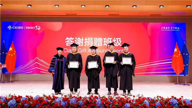 站在中欧EMBA三十周年新起点,也站在全球商业格局深刻变革的十字路口,我想对即将启程的你们,提三点期待,希望与各位毕业生共勉。第一,做“守正创新的实干者”。守正是根基,创新是动力。希望你们守住企业经营的本质,也要敢于拥抱创新,主动探索技术如何为企业赋能。第二,做“共生共荣的践行者”。希望你们能以共赢的姿态对待产业链,以长远的眼光践行ESG,把可持续发展融入企业战略。第三,做“中国文化的传译者”。希望你们能把中国企业的管理经验、创新模式,转化为国际社会能理解的商业语言,把中国企业家务实、坚韧、向善的精神,传递给全球。