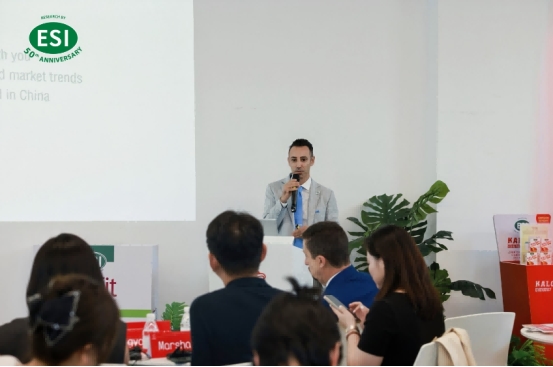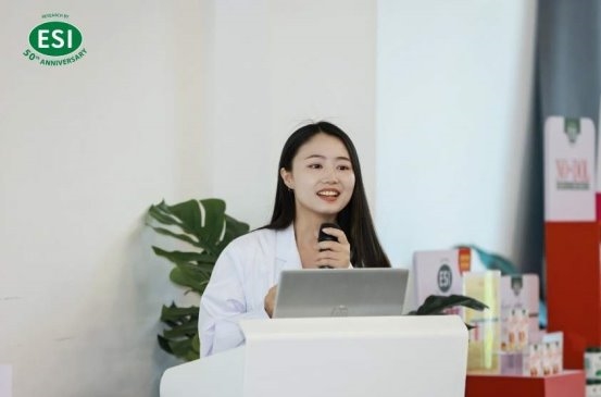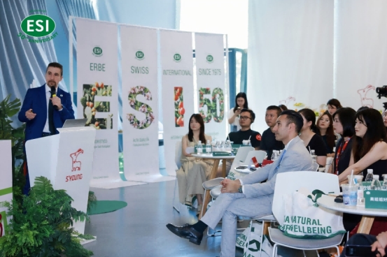 全球市场负责人在主题演讲中回溯品牌坚守"天然安全"的研发理念,展示品牌自有制药级国际工厂及全球权威认证的硬核实力;全球出口负责人则分享了对前沿健康趋势的洞察,分享ESI走向全球55个国家和地区的发展历程。