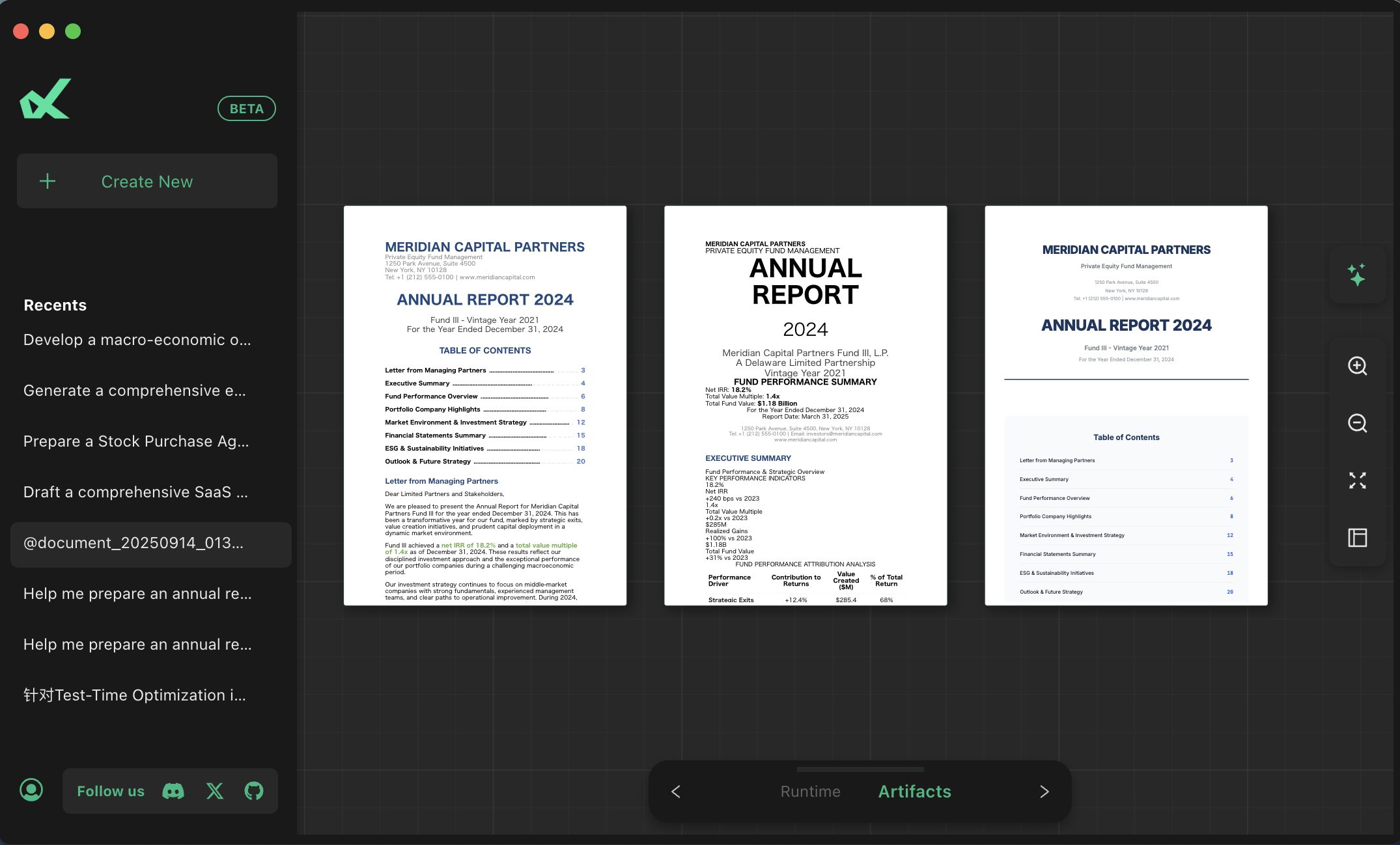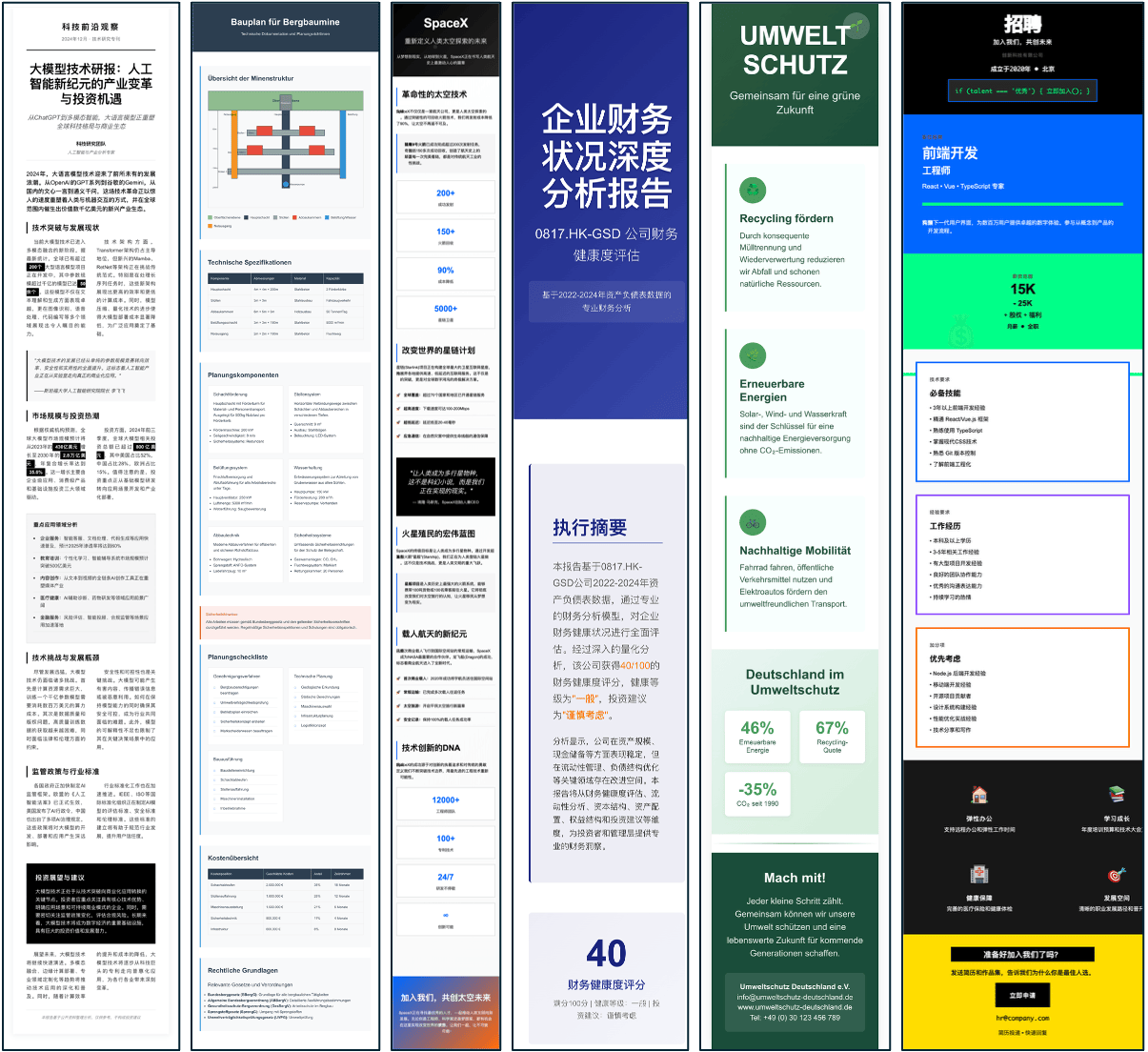 不同于通用聊天机器人,Libra 聚焦金融报告、法律文书、医疗记录、学术论文等高规范场景,内置多行业专业模板与格式规范,可自动化完成内容构建、逻辑梳理到排版输出全流程,友好支持DOCX、PDF、XLSX等文件格式,交付质量达专家水平,将用户从繁琐的编辑工作中彻底解放。