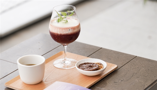 例如,该系列主打的「风味重组」咖啡,通过分子料理技术,将三种不同的风味重组成为全新风味,类似于在素店里吃出了肉的感觉。其中,树莓中含有苯甲醛是构成巧克力风味的重要成员之一,蓝莓中含有丰富的酯类本身带有一种发酵般的甜果香和酒香,与巧克力带有的果香、酒香后韵有相似之处,这是一次大胆的“风味新解构”。