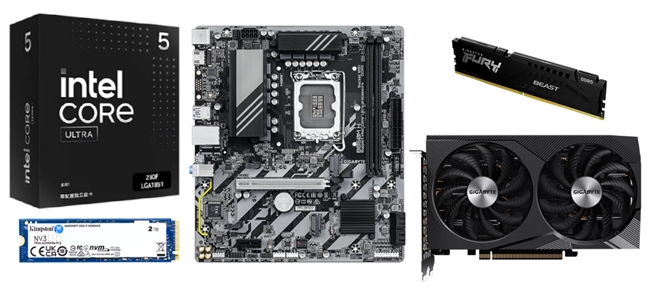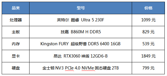 千元级处理器怎么选?唯有英特尔 酷睿 Ultra 5 230F,拥有6大核4小核10线程,大核频率3.4-5.0GHz,小核频率2.9-4.4GHz,二级缓存24MB,三级缓存22MB。匹配的主板选择了技嘉 B860M H DDR5,虽然是一块小板,但是功能依然强大。4+1+2供电模块,2组DDR5内存插槽最高支持128GB内存,2组M.2接口。