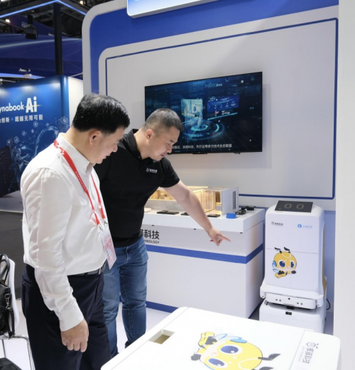 本届数贸会上,云迹科技与生态智能伙伴精彩亮相“人工智能展区”。辉驿智慧运营总控平台、云迹新一代机器人UP、小度智能音响、绿云智能前台等同台亮相,通过多方技术联动,将“AI+机器人+智能设备+酒店场景”深度融合,共同推动酒店数智化升级,向行业呈现智能服务的新典范。