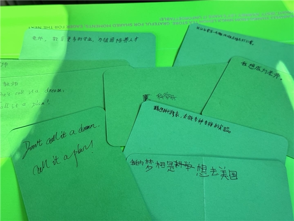课程结束后,孩子们用稚嫩的笔触,在卡片上认真写下了对未来的憧憬与梦想。一张张小小的卡片,承载着他们初次被点亮的、对更大世界的好奇与向往。