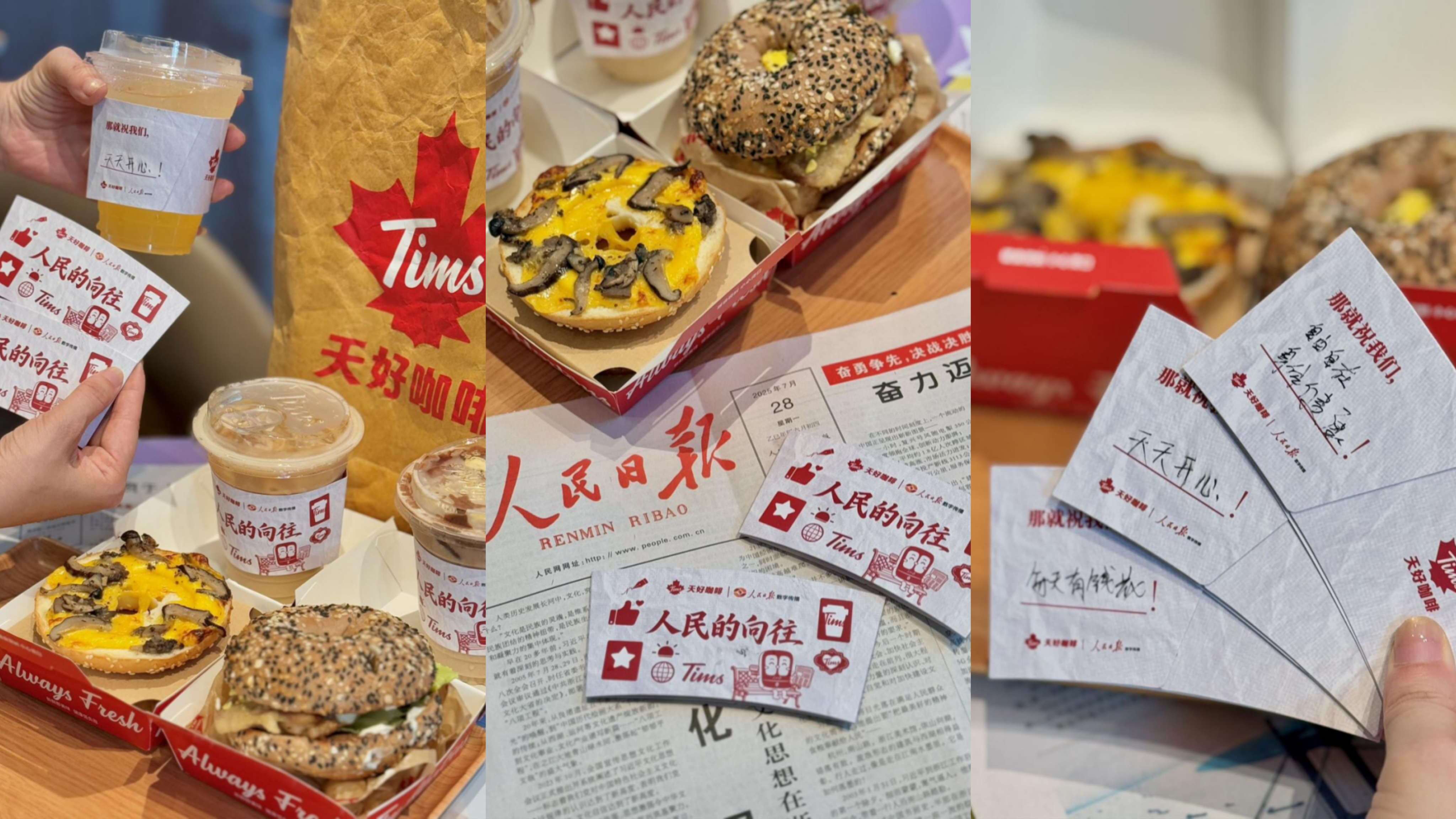 Tims天好咖啡全国十家主题店,成了这份温情的线下载体。走进Tims天好咖啡,专属杯套与当日报纸的搭配,让喝咖啡这件小事有了别样仪式感。那些带着“人民”印记的小周边,如联名托特包、小红花徽章等,更像是为日常生活准备的“小惊喜”,让人在忙碌的都市生活中找到一丝温馨与慰藉。