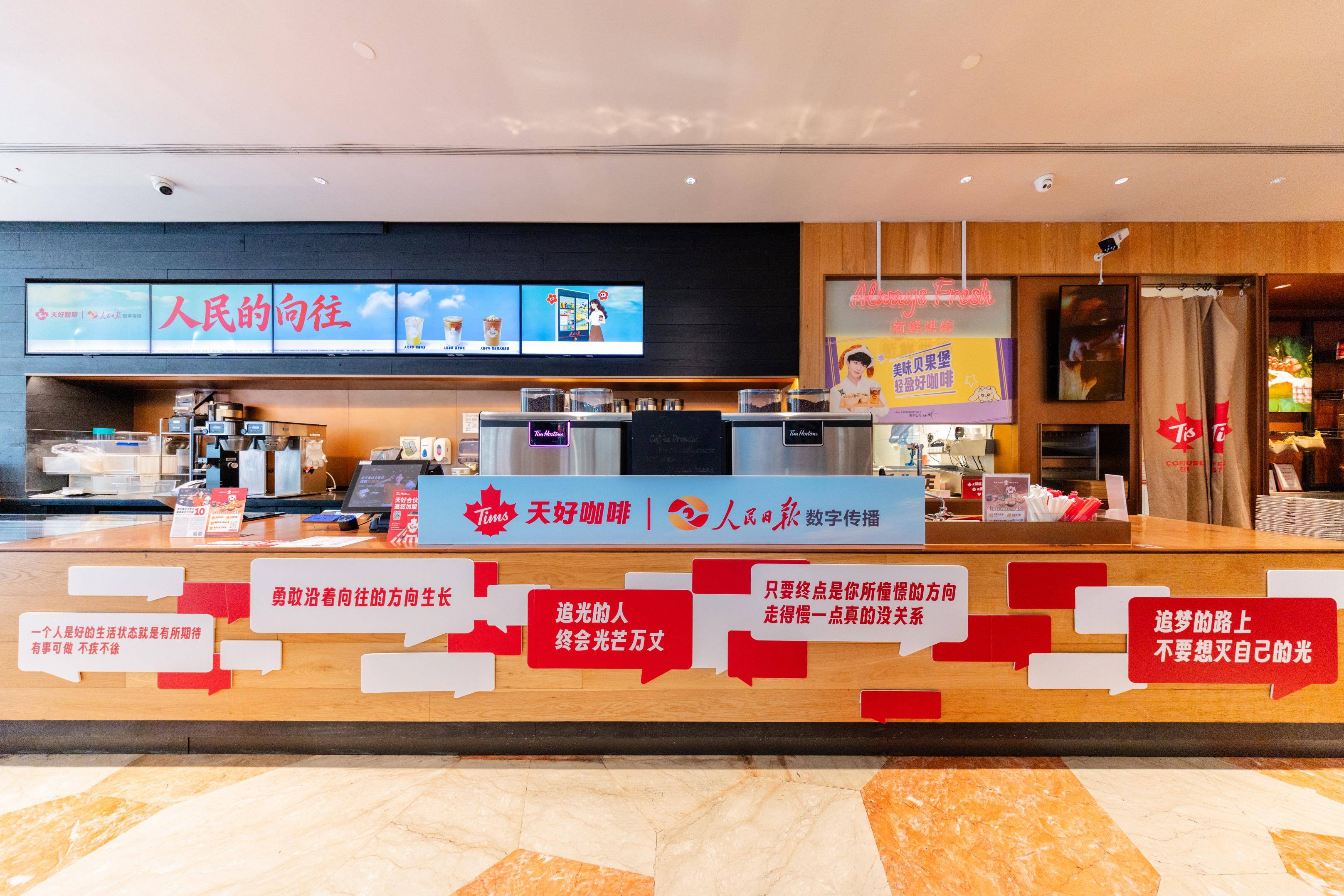 人民日报数字传播用文字记录着时代脉动,见证着几代人的成长与奋斗;Tims天好咖啡则以一杯咖啡陪伴日常的时光,给予家一般的温暖。两者的相遇,没有刻意的表达,只是将精神层面的共鸣,融进了燕麦拿铁的醇厚与橘柚乌龙的清爽里,让“人民的向往”在日常滋味中自然流淌。