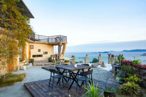 滨海绿道的一端,是“中国最美渔村”——海利村,由面朝大海、依山而建的石屋民宿群组成,错落有致。可以一边听着耳畔传来的海浪节拍,一边游走在石屋间,拾级而上,这一刻,你会真切感受到《在海边》。