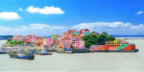 在石塘,海上落日的最佳观景地是《七彩小箬》,犹如七彩童话的代名词,一度在小红书上成为石塘的封面。这里,每一面墙都涂满了鲜艳的色彩,每一扇窗都映照出村庄的安宁,简单而淳朴,浓烈而和谐。