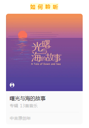 2024年,中吉原创年旗下的6位音乐家受温岭文旅邀请,在不同的季节来到石塘半岛采风,游走山海,将自己的所见所闻,所思所想谱写成吉他乐谱,诉说了一个个动人的、关于曙光与海的故事,最终他们所有的12首原创作品都汇集于《曙光与海的故事》这张吉他独奏专辑中,与广大吉他乐迷们见面了。