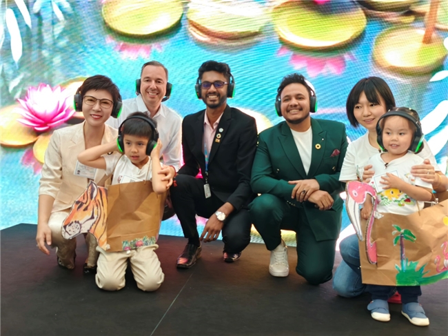 本次展览展出了从全球4000余幅投稿中精选的650余幅作品,其中包含来自中国红黄蓝幼儿园的242幅画作。孩子们用稚嫩却充满力量的笔触,描绘了青山绿水、万物共生的和谐图景——从栖息在犀牛背上的鸟群,到畅游清溪的鱼群再到漫步雨林的老虎,将生态保护、生物多样性、粮食安全等宏大主题化为生动的视觉语言,使参观者得以领略丰富多彩的生态系统与万物共生景象。
