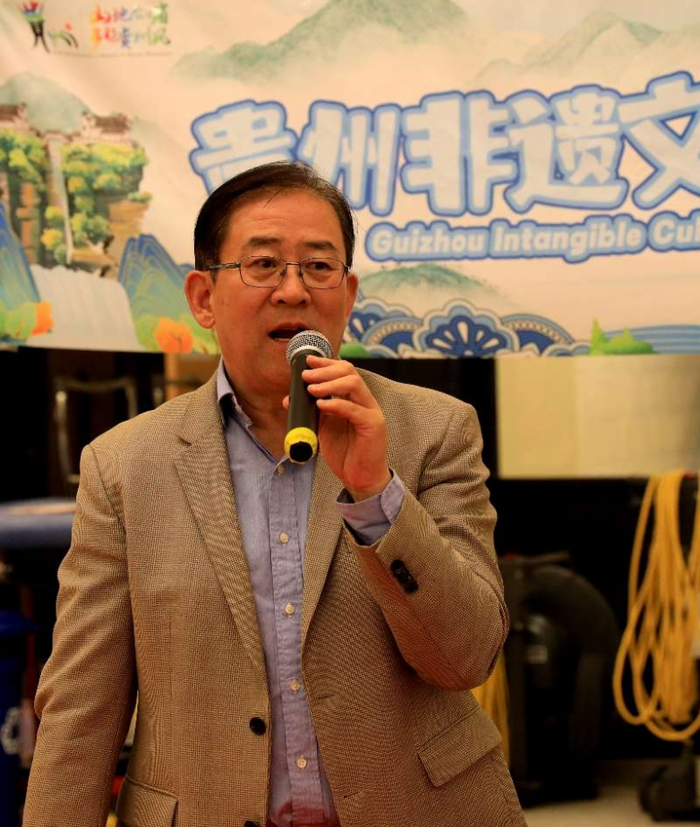 中国驻美国大使馆参赞兼副总领事董传杰现场致辞并推介贵州非遗