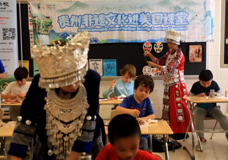 10月18日,由贵州省人民政府新闻办公室联合美国多所学校举办的“贵州非遗进美国校园”活动率先在美国美中实验学校拉开帷幕。活动通过民族服饰展示、“贵州印象”摄影展览、非遗进美国课堂等多元形式,为美国学生带来一场沉浸式的贵州文化盛宴。接下来活动还将在华盛顿哈维中文学校、弗吉尼亚希望中文学校、乔治亚州圣安德鲁斯中学等美国学校陆续开展。