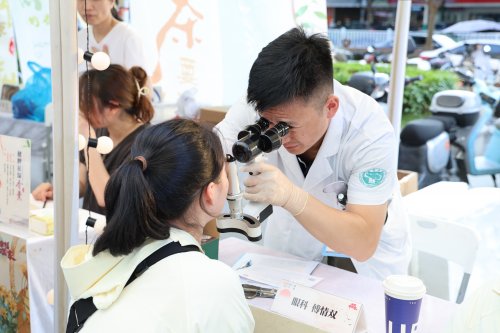 在眼科的“明目养瞳堂”摊位前,陆续有小朋友前来测量视力。一位家长表示,自己日常就很关注孩子的视力问题,看到这里有视力检测服务,便带着孩子过来检查一下。康复推拿科的“舒骨复元堂”也备受热捧,推拿医生在现场一个接一个地为市民推拿。