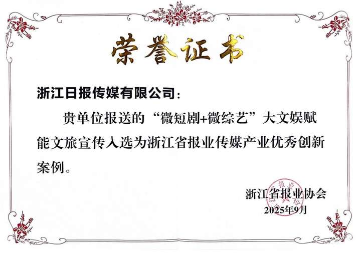 此前,在第二届浙江省报业传媒产业发展大会中,包含柚香谷联合浙江日报传媒有限公司出品的《最忆江南烟火色之柚花开了》在内的系列节目获得“微短剧+微综艺”大文娱赋能文旅宣传优秀创新案例。