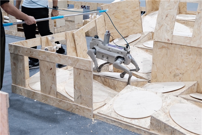 本届比赛共有来自顶尖高校约7支队伍参赛,出现了体重达50公斤级的大型机器狗与仅15公斤级的钢镚L1同场竞技的场面。比赛现场设置了极具挑战性的竞赛环境,包含楼梯、阶梯场地、K型护栏、托盘堆、坡道等多种复杂地形,全面考验机器人的运动稳定性、越障能力和环境适应性。