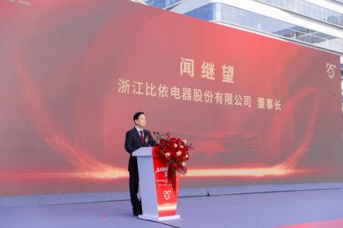 仪式上,比依股份董事长闻继望发表热情洋溢的致辞,他表示:智造基地的落成,是比依股份发展史上的一个重要里程碑。这不仅是一次生产规模的物理扩张,更是一次深刻的战略升级和制造能力的全面革新。新基地将深度融合工业互联网、大数据、人工智能等先进技术,致力于打造一个“高效、精益、绿色”的现代化智慧工厂,为我们全球的客户提供更高品质、更具创新性的产品解决方案。
